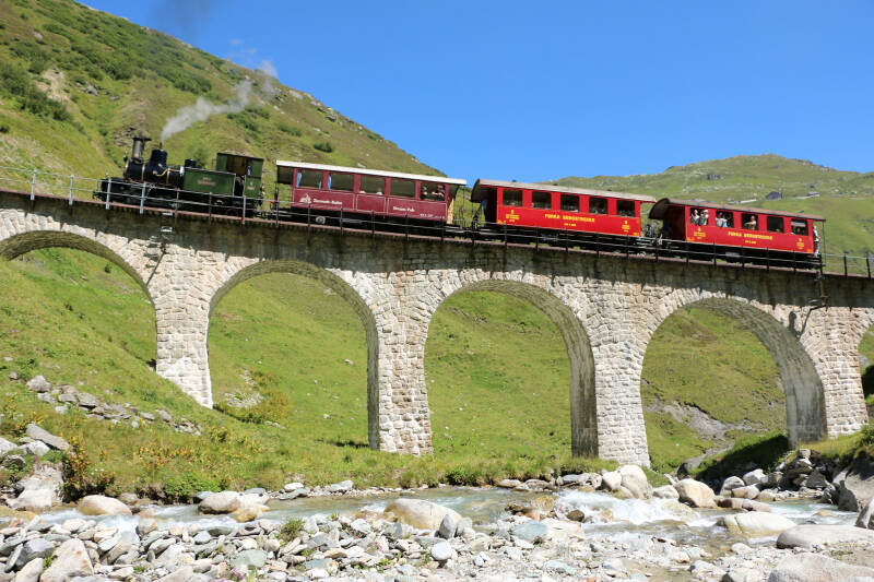 Tegenwoordig rijden de treinen - inclusief de Glacier Express - via de Furkabasistunnel. Tot 1982 reden de treinen over de Furka pas. De spoorlijn over de Furka wordt nu alleen gebruikt voor stoomtreinen. Deze rijden dagelijks in het hoogseizoen en in het voorseizoen op vrijdag, zaterdag en zondag. Meer over de Dampfbahn Furka Bergstrecke (DFB).